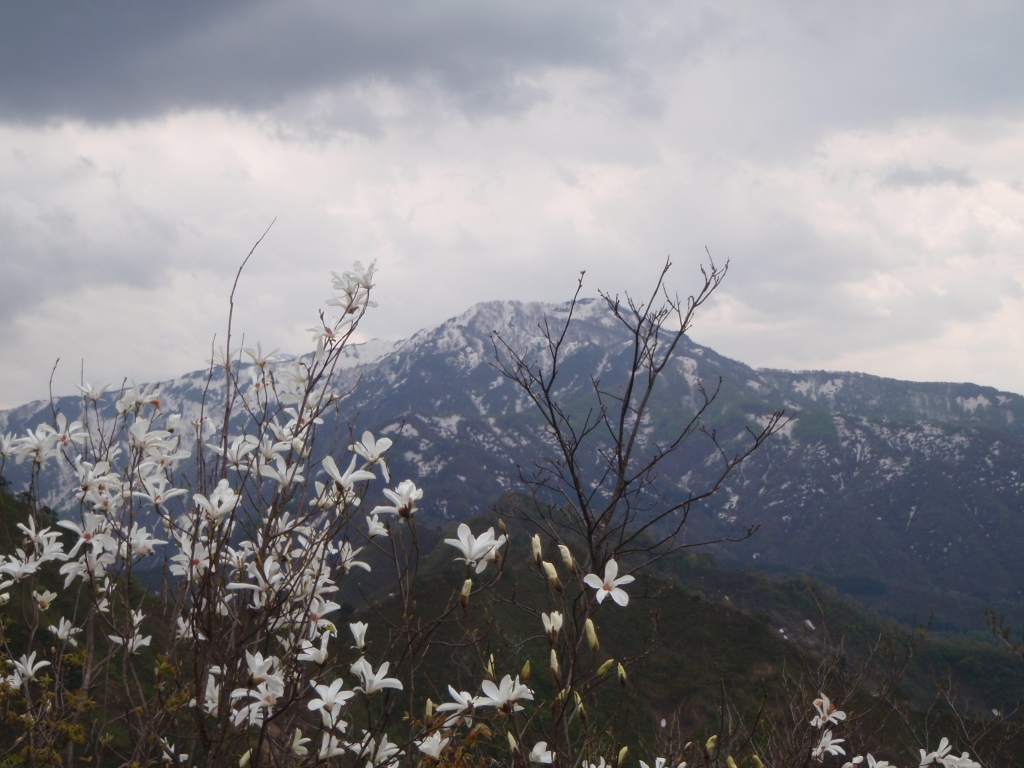 <タムシバの花と金城山>