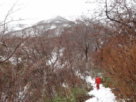 途中から雪が多くなり、締まっていないので歩きにくい。
