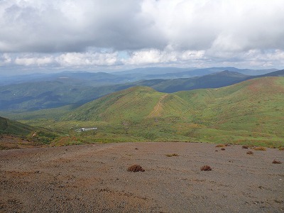 5:50須川湖キャンプ場−5:55須川温泉登山者用駐車場−6:15須川温泉登山口−6:35賽の磧−6:55名残ヶ原−7:30昭和湖−8:25天狗平−8:45〜9:30栗駒山(休憩)−10:00瑞山(笊森)コース分岐−11:00名残ヶ原−11:20須川温泉登山口−(須川高原温泉で入浴)−12:30須川温泉登山口駐車場−(新庄〜山形〜南陽〜小国)−20:00新潟