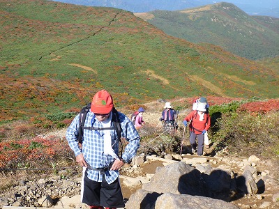 紅葉の中、山頂を目指します。