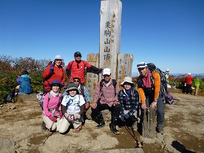栗駒の山頂で記念撮影。山頂で少し早めの昼休憩でしたが、休んでいる間にも続々と登山者が登ってきて、座る場所もないくらいでした。