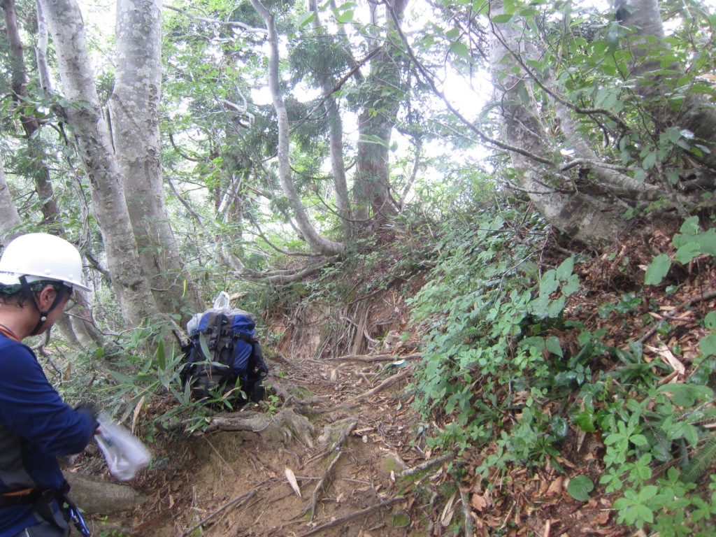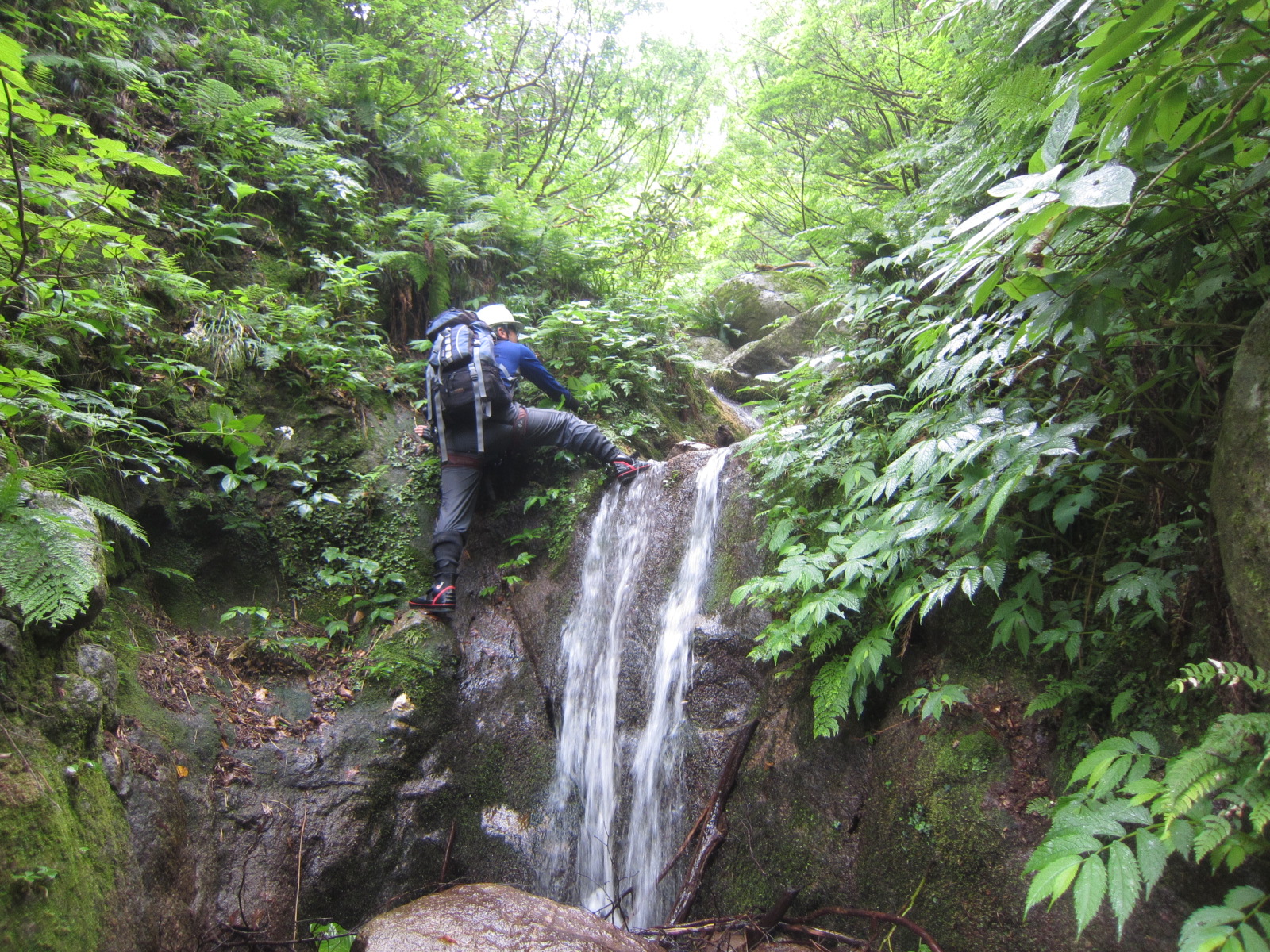8月11日(土曜)の夜発で蔵王の振子沢に行こうと思っていたが、どうも天気が思わしくない為中止とした。しかし、土曜の県内は天気ももちそうだったので、Fを誘い近くの五頭の沢に行く。お盆前の所用もあり、午前中で切り上げたかったので、時間も短く易しそうな広手沢を選択した。新潟を5時半に出発し、途中で食料などを買い6時半頃魚留の滝駐車場に到着する。魚留の滝駐車場から登山道を進み、松平山への分岐を見送り、エノ倉沢を越えて、大荒川の堰堤から入渓する。ゴルジュや滝を通過しているうちにヒロテ沢を見過ごし、コクラ沢の出合まで来てしまう。20分ほどかけ、後戻りしてようやくヒロテ沢に入る。ヒロテ沢は本流に比べると水量は少ない。大きな滝はないが、倒木が多くなっていて通過に手間取る箇所もあった。後半に行くと2m位だが手がかりが微妙で登り応えのある滝もあり、それなりに楽しめた。最後は急斜面を木に捕まりながら登り、登山道に出た。この登山道に出た瞬間がなんともたまらないと思う。ほっとする瞬間であり、沢を抜け切ったという達成感がある。五ノ峰はすぐ近くだが行かず、少し下り赤安山の分岐の地点で昼食をとった。蒸し暑い登山道を下ってちょうど12時には駐車場につき、予定通り午前中で切り上げることができた。