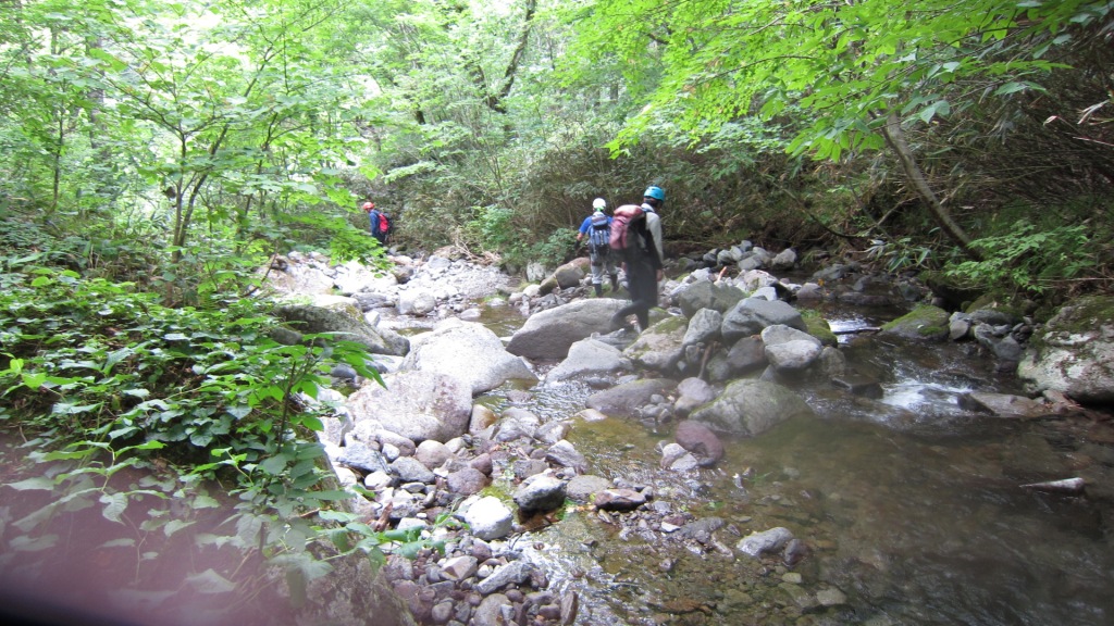 そのまま峠沢を下り、1時間30分ほどで井戸沢の出合に着いた。登山靴に履き替えてあとは林道を緩やかに下っていった。この井戸沢を登って峠沢(或いは中ノ沢)を下るコースは山登りの色々な要素があって、とても楽しめる。とりわけ緊張する場所もなく、のんびりといけるところもいい。(林道歩き長いことと、新潟から遠いところが難点だが)