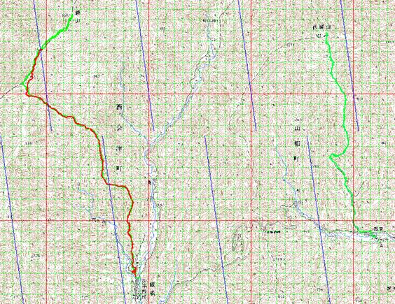雪は十分あるが,木も十分にあるので斜面のへりや割合に木の間隔が広くなったところを縫いながら滑って行く.ところが,途中クリアーしたと思った木に右のスキーが引っ掛かってしまい,情けなくも半宙吊り状態となる.しかも2本の木が交差した状態でブーツのところで引っ掛かってしまい,そのままではスキーを外すことができない.しばらくもがいたが,すぐにあきらめて草刈民代もびっくりの開脚状態でT隊員の救援を待つ次第となる.