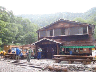<8/13> 新穂高温泉7:00 − わさび平小屋8:30 − 秩父沢9:55 − シシウドガ原11:15 − 鏡平山荘12:05〜12:20 − 稜線分岐13:20 − 双六キャンプ場14:27