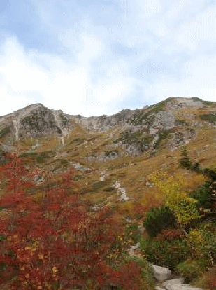 天気予報も悪くはないので笠ヶ岳に登ることにする。数年ぶりにお盆に行った際にも荒天だったので、晴れている笠ヶ岳に登ってみたかった。今回は単独で、小屋泊まりの計画。食事付の小屋泊まりはウン十年ぶりとなる。連休中日だと駐車場や小屋が心配なこともあり、金曜日の夜に新潟を出、土日の計画とした。新穂高温泉には深夜0時過ぎに着く。無料駐車場の入口にガードマンがいて、説明を始める。「無料駐車場はすでに満車で、ここから車で5分、歩くと30分の別の無料駐車場か、奥の有料駐車場に止めてもらうしかない」「???」コースタイムが8時間近くもあるのに、プラス30分も歩くなんて考えられない。即座に奥の有料駐車場に車を入れる。明るくなり車から出てみると有料駐車場は満杯、車道脇にもびっしりと車が止まっていた。登山者がどんどんと歩いていく。天気は高曇り。笠ヶ岳へ向かう人は少なく、ほとんど小池新道に向かっていった。笠新道は最初はブナ林のジグザグ道。ブナの紅葉はまだこれからのようだ。ブナ林を抜けると槍ヶ岳や穂高連峰がよく見えるようになる。