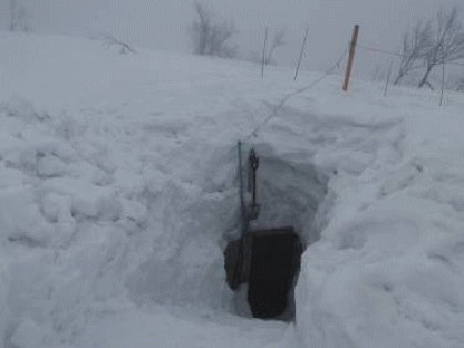 昨日と違い、深いガスにまかれた朝を迎えた。今日も霧雨模様。朝の冷え込みがなかったので、雪は腐ったまま状態。縦走路もガスの中。ピークのたびにGPSと地図を見ながら進む。松平山も深いガスの中、山頂の木柱も雪の中だ。ここから縦走路に入るところで間違い、違う尾根に入ってしまう。山頂に戻り、雪尻を乗り越えて縦走路に入る。文明の利器のGPSは素晴らしい。自分の向かいたい方向を見るのは難しいが、自分の現在地がピタリとわかる。