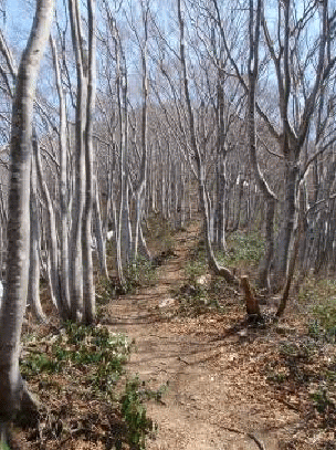 <高坪山頂下のブナ林>