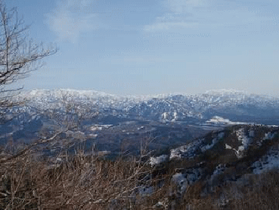 <展望台からの二王子岳、飯豊連峰>