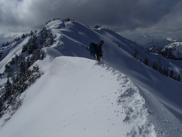 東の峰に上がると、足跡はなくなった。さっきの三人組は、理由は解らないが山頂までは行かなかったようだ。山頂の手前は尾根が痩せており気を使う。慎重に歩を進め念願の赤倉岳山頂に到着した。
