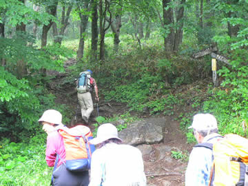 白石女子高小屋跡8:56着 登山口へ |