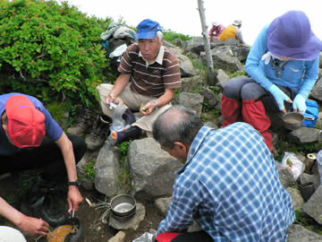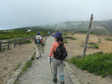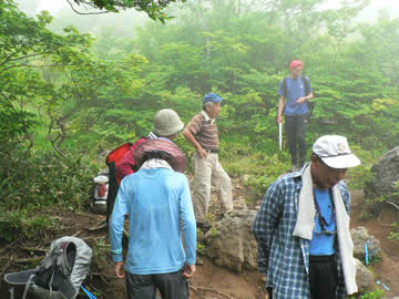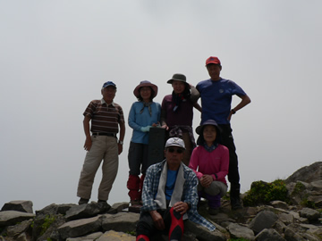 ナルSEAさんに連れて行ってもらってます。つぎにT村ママ、へなちょこ隊長:ウRiver 29日のALLメンバー 天候は、宮城側(太平洋方面)は雨らしい。山形(日本海方面)ところどころ一瞬晴れ間が見える日に焼けない天候で山頂の為、程よい気温でよかった。 たまにガスり三途の川ってこんな?みたいな風景でした。 初めてだし、百名山だし。だし×だしです。 |