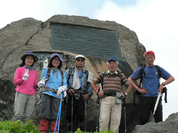 | へなちょこ隊長到着時間11:23。隊長本人はここでいいよーーと言ったものの。。。 他メンは山頂到着数分前ぐらいって感じの後ろ姿を見て悩んだけど、行けるところまで行ってみようと行ってみました。 山頂に11:51につきましした。※途中までT村ママは迎えに来てくれました。ありがとうです。 ※不忘の碑は英語で書かれてありました。 |