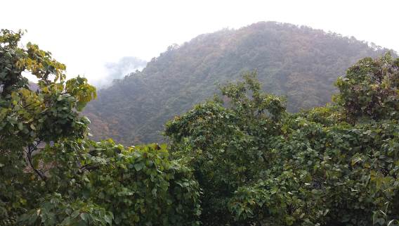 前夜からの雨は朝になってもやむ気配がない。金城山をあきらめ、どこかの小屋でゆっくりしようということになり、目的地を八石山にレベルダウンする。しかも一番標高差の少ない八石山林道からのルートだ。