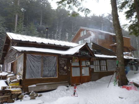 本沢温泉にテントの申し込みをする。若い美人の娘さんがあまり商売気のない対応をしてくれた。宿泊客も少ないようだ。テンバ代は一人700円、露天風呂料金も700円とのことだったが気温がマイナス10度以下の中では入る気がしない。テントを張り、さっそく宴会とする。ガスストーブに火を着ければテントの中は暖かく快適だ。話も尽きず夜はふけていった。