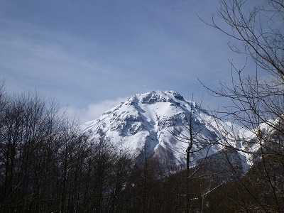 明神を過ぎたあたり。この時すでに私の右足は限界で、歩く度に股関節に激痛がはしる状態。写真を撮る余裕もなくなりました。慣れないスノーシューのせいか、ザックの重量オーバーか・・・。
