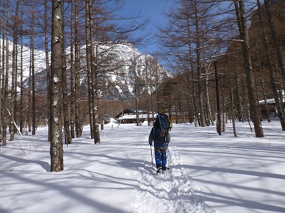 2月10日/10:00徳澤発−11:20明神−12:40〜14:00上高地バスターミナル(昼食)−15:00大正池ホテル−15:40釜トンネル入口−16:00釜トンネル出口−16:00〜16:15タクシーで沢渡第二駐車場へ移動 温泉の後、松本市内で1泊