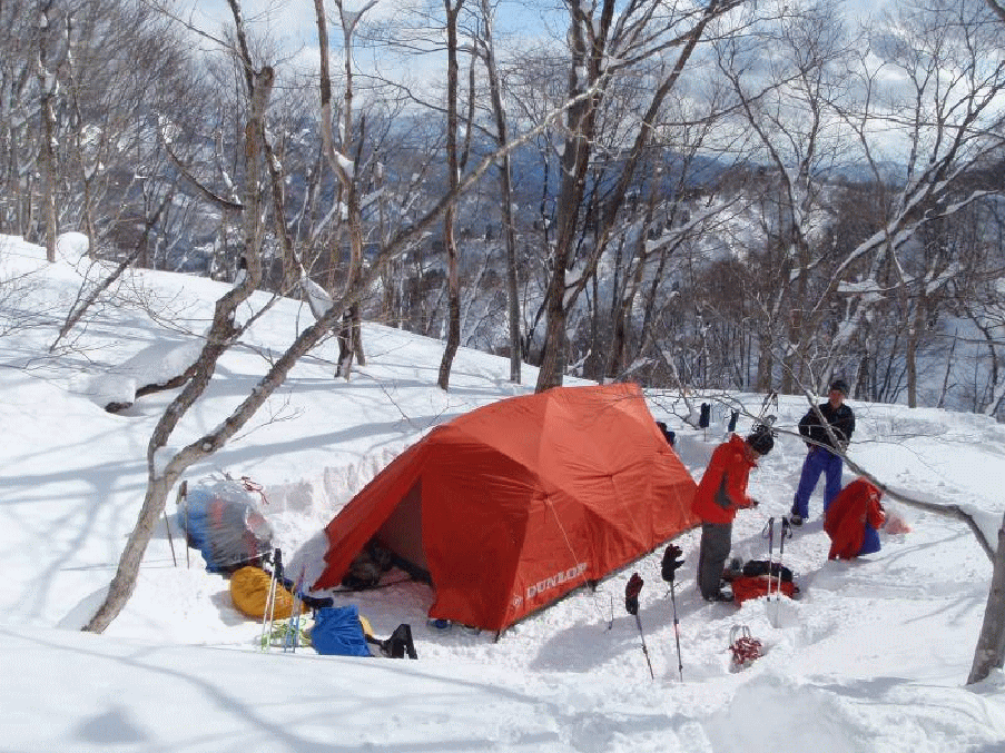 テントを撤収してからの下山は一気だ。雪山の下りは登りの半分以下の時間である。あっという間に車に到着した。