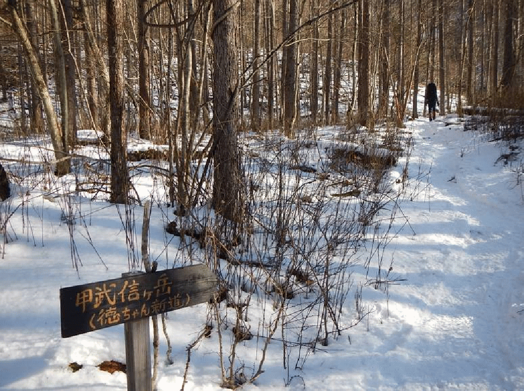 天気はもちろん良く、数年前よりは暖かく感じる。西沢渓谷入口に登山者用の駐車場には20台くらい止まっているだろうか。木賊山からつながる鶏冠尾根がよく見える。本当にトサカのようだ。雪は所々にあり、凍っている箇所もある。笛吹川沿いの林道を行き、徳ちゃん新道登山口から山道に入る。