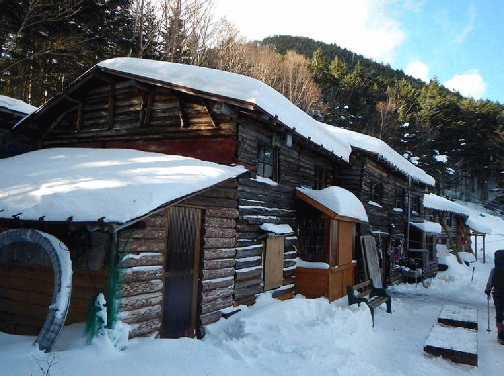 テン場は小屋の真下。水を分けてもらえるのがうれしい(1L=50円)。水作りの手間がなくなったので、テントを張り、甲武信ヶ岳を往復してくることにする。今季はやはり雪が多いという。山頂まではアイゼンなしで行く。