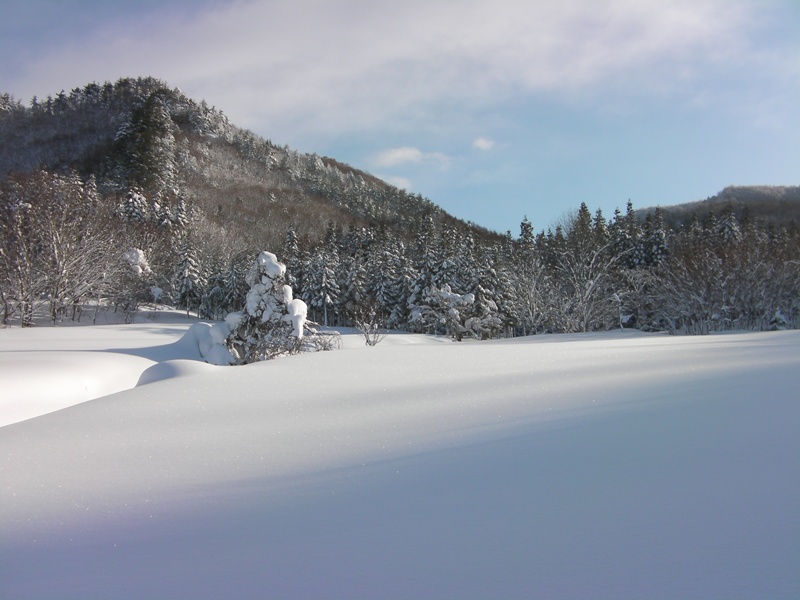 その先で初めてのS字カーブがある.こういうところは,なぜかショートカットをしたくなる.そのまま林道を歩いたほうが労力も少なく,時間もそれほど変わらないのにショートカットするのである.せっかく汗をかかないように歩いてきたのに深い雪の急登で息を切らし,汗をかくのである.脳の回路が短絡しているのである.