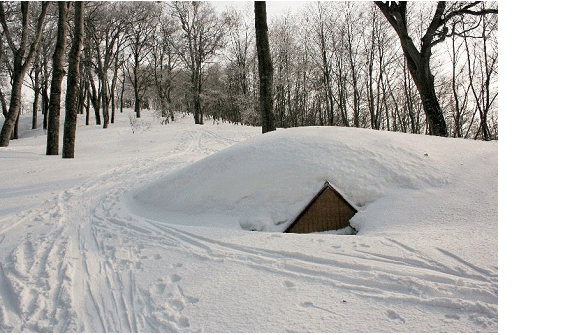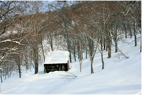 このところまとまった雪が降っていないので、春のようにしっかりと雪が締まっていて、全くラッセルがない。遅く来て後から登って行ってもラッセル泥棒と気兼ねすることはない。今冬は大雪の予報に反し平野部を中心に小雪だが、山にはそれなりに積雪がある。沢も埋まっていて問題なく通過できたし、保久礼小屋の屋根にもしっかりと雪が積もっていた。