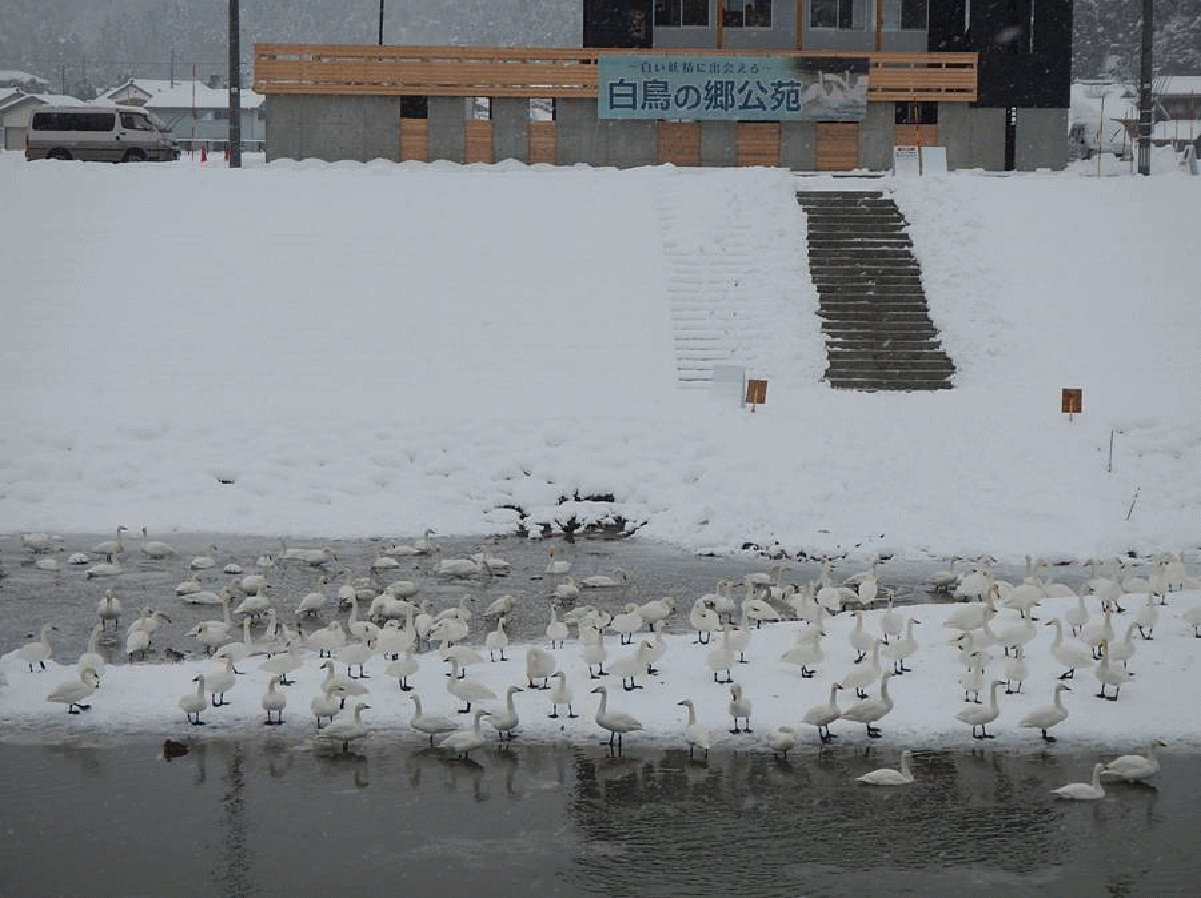 高城の避難小屋にツエルトを張り、大休止とする。小屋の中で暖をとれるのはありがたかった。それにしても雨具から手袋からすべてがびしょ濡れとなる山行となった。近くにある「白鳥の郷公苑」の白鳥だけ元気いっぱいだったようだ。