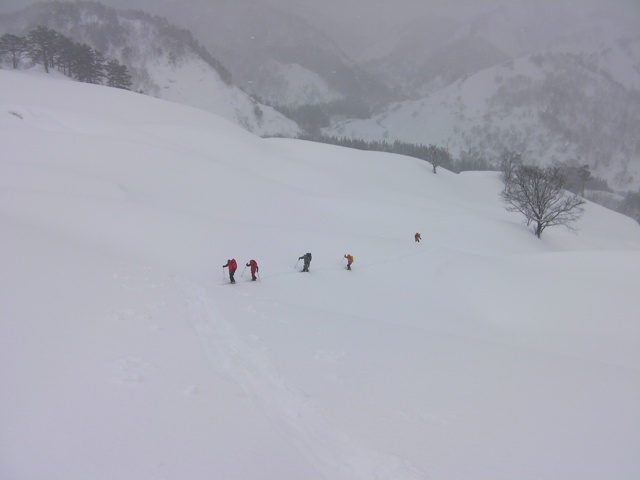 メンバーは総勢6名である.スキー2名,テレマーク1名及び徒歩3名である.