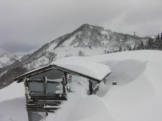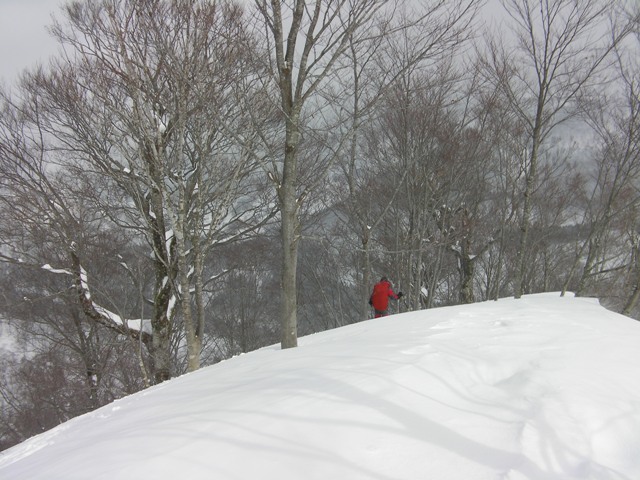 じきに,展望台が見えてくる.雪はねっとりとまとわりつくような湿り雪である.ほとんどラッセルなしで歩くことができる.が,シールに雪が少々くっつき,雪面にシールをこすりつけるように歩かなければならない.