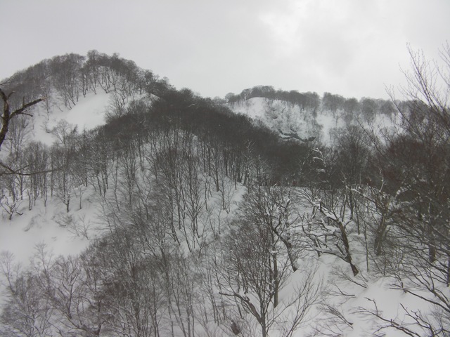 展望台からは,今日登った705mピークがすぐそこに見える.後は,適当に下に向かって滑るだけである.
