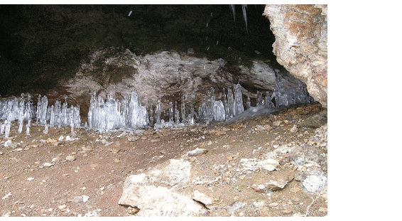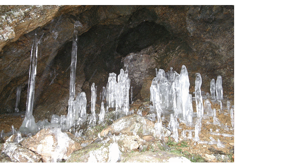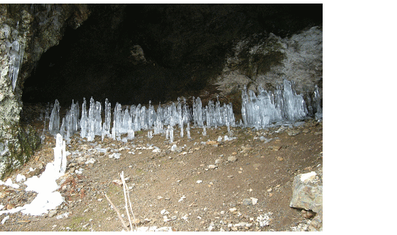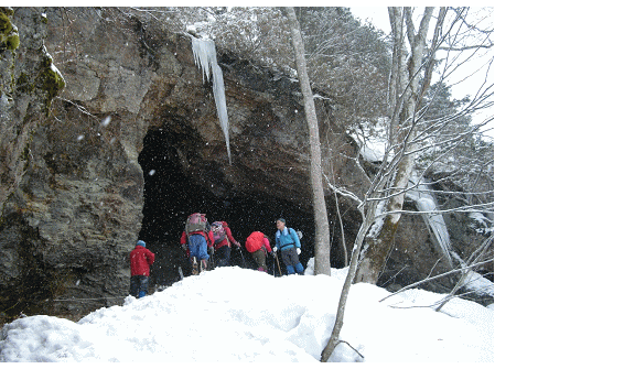 【実録時間】 車9:22 − 岩魚養殖場見学 − 入山口10:10 − 主尾根鞍部11:00〜11:05 − 第1,2洞窟 氷筍見学11:10〜11:20 − 龍ノ山頂上11:45 − 主尾根鞍部<昼の憩い>12:15〜13:30 − 入山口13:55