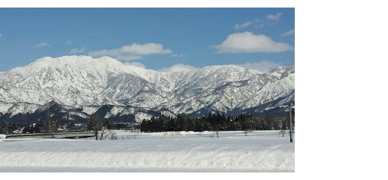 阿寺山の山頂付近は、かん木類がほとんど雪に埋まっていて、360°遮るものがない展望台だ。予報どおり天気は下り坂で、上空は一面に雲が広がってしまったが、越後三山と三国川を取り巻く山々はすべて見渡せた。