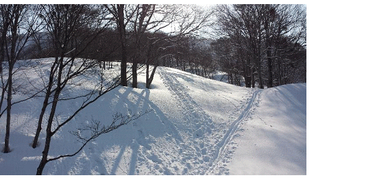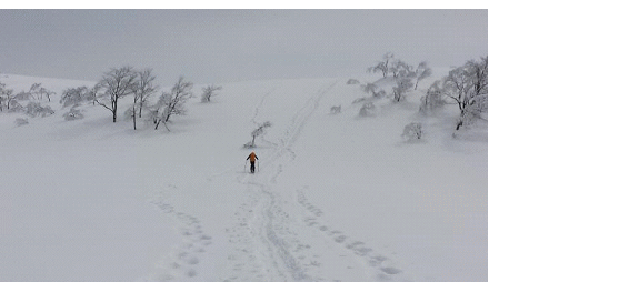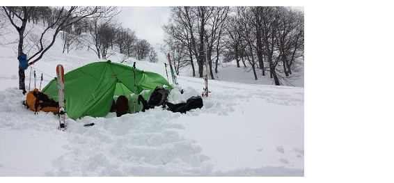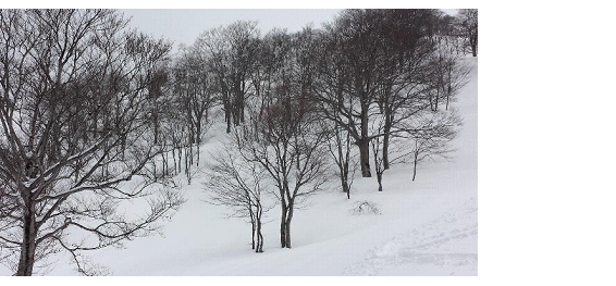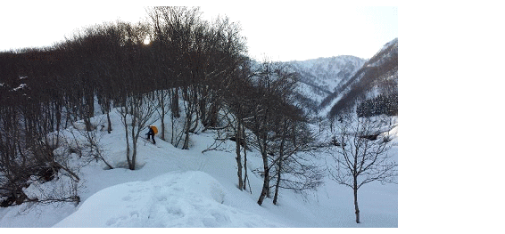 少し風が出てきたので、標高1250mの平坦地でお昼の大休止とすることにして、山頂を後にする。気温は上がってきていたが、まずまずの雪質で快適スキーであった。