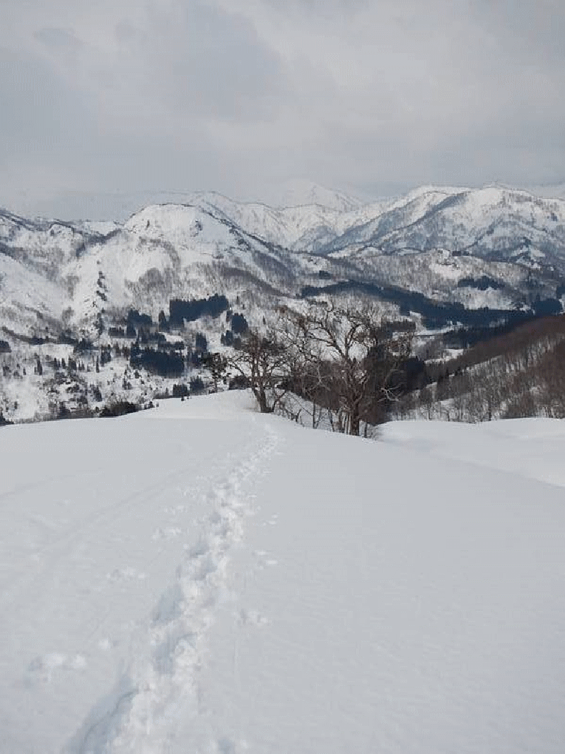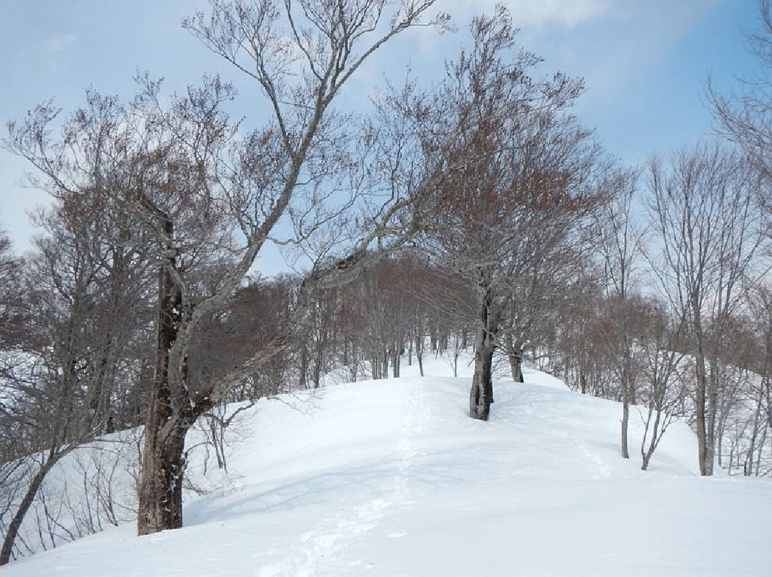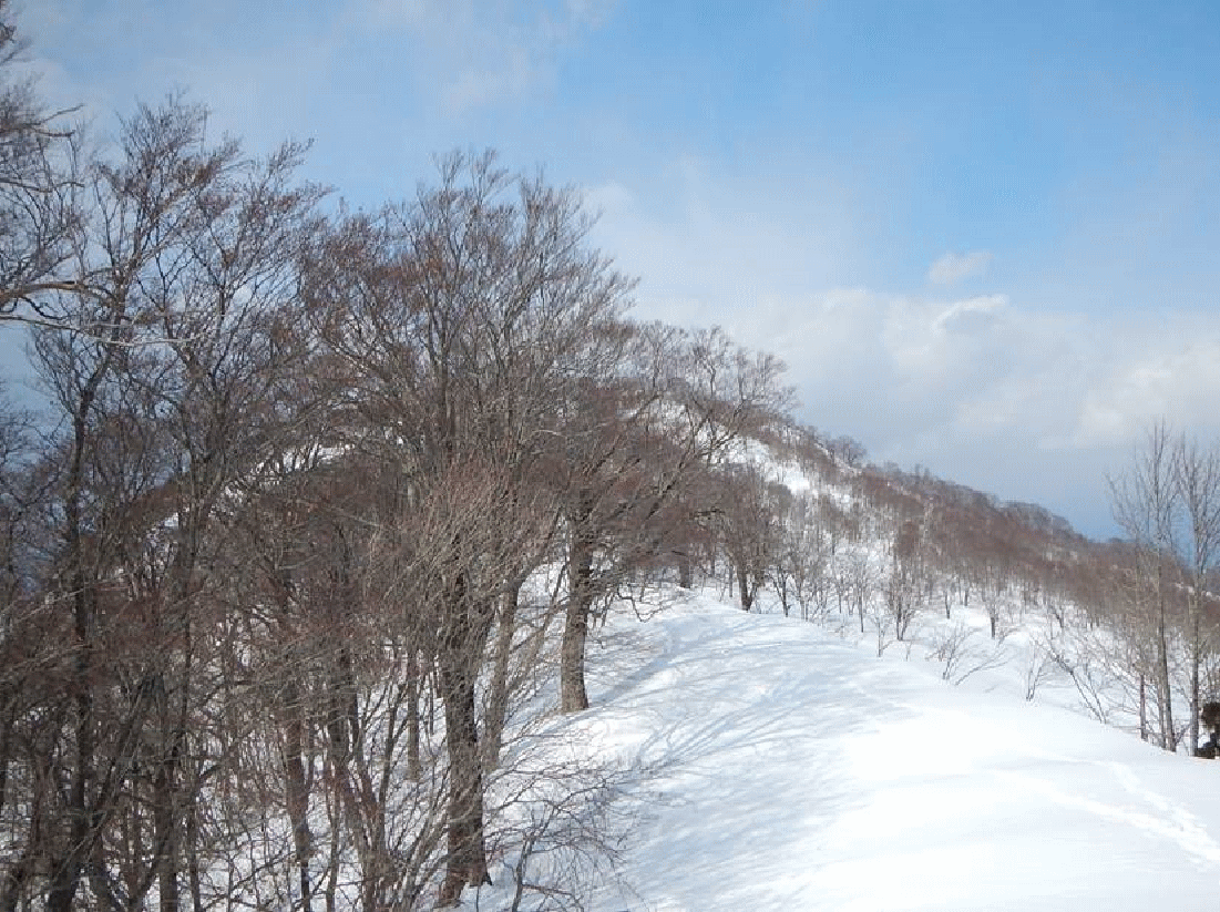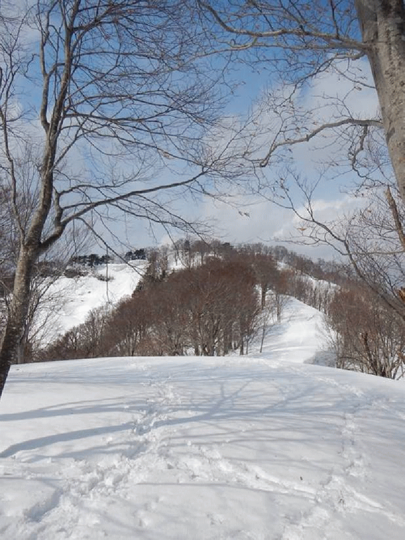 このワラビ園は山スキーには絶好の斜面だ。突撃隊長にもお気に入りのゲレンデいるようだ。しかし、樽口峠から大花山間は尾根が細く、アップダウンもあるので、少し不向きかも。