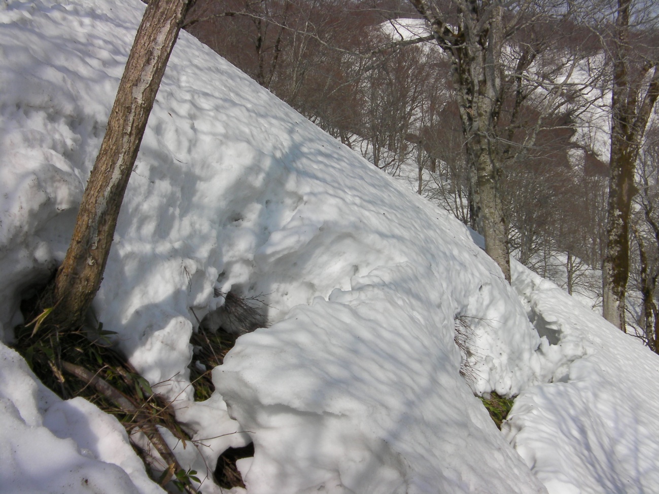 ただし,新雪時はここのトラバースは雪崩リスクが大きすぎる.無謀というものである.悪い子でもまねはできない.どうやら厳冬期の大花山はスキーには難しいようだ.もっとも厳冬期でなくてもスキーで登る人はいないような気がするが.