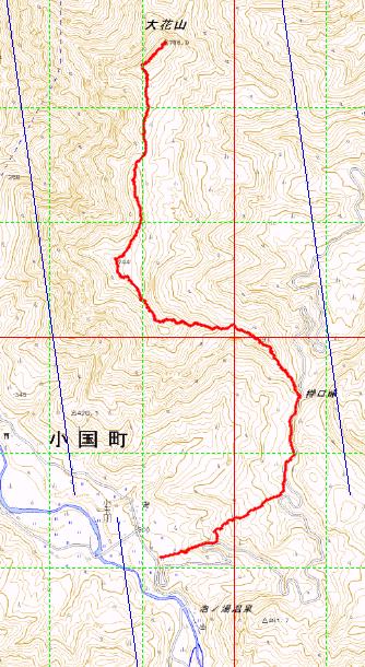 小玉川公民館(標高300m)7:38 - 展望台 7:57 - 樽口峠8:08 - P591m標高点 8:28 - P705m下 8:45 - 744m標高点 9:03 - 山頂(標高786m) 9:32~9:49 - 744m標高点 10:10 - P705m下 10:20 -