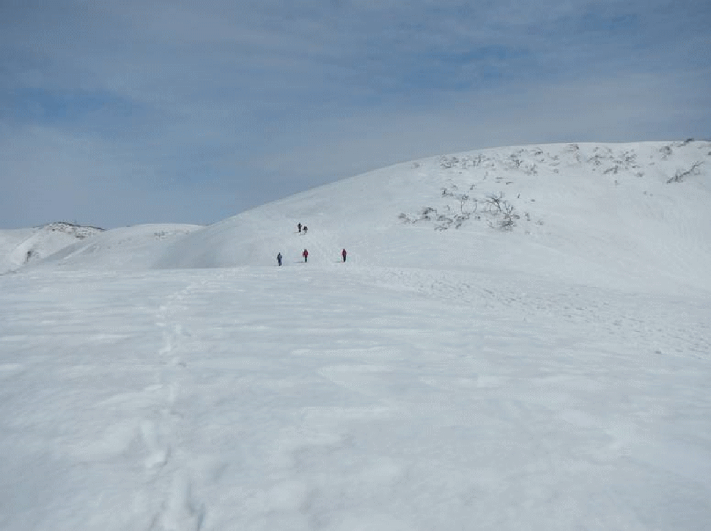 とにかく雪の作り出す造形物はすばらしい。急斜面を見つけてはシリセード。はたまた登り返して滑ったり童心に還っている。本当は50−60代なんだけどね。