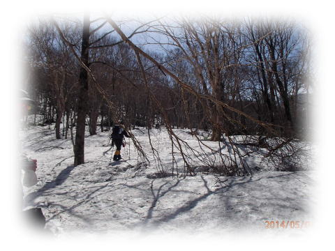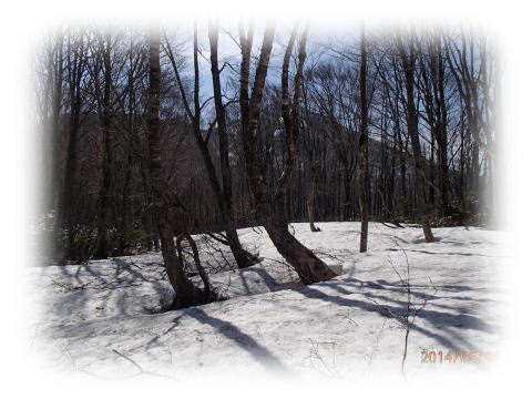 ・・・・山頂の展望が開ける・・・雪のあるところを適当に上ると最後はヤブに捕まる。