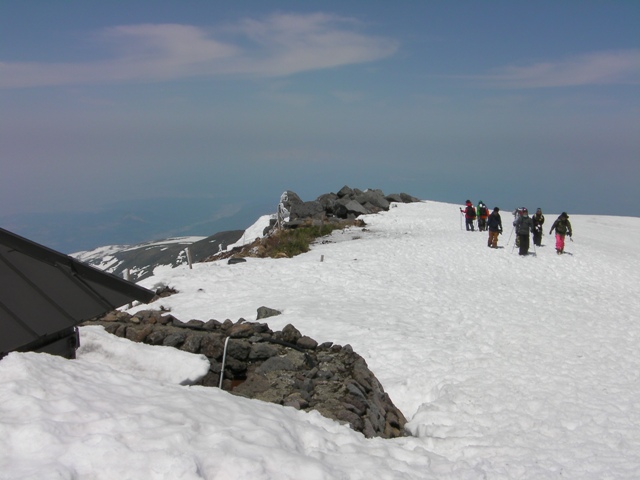再びシールで鍛冶小屋跡まで登ると,後は山頂付近までザックに板を付けて夏道なりに登る.風がいつものようにそれなりに吹きつけている.