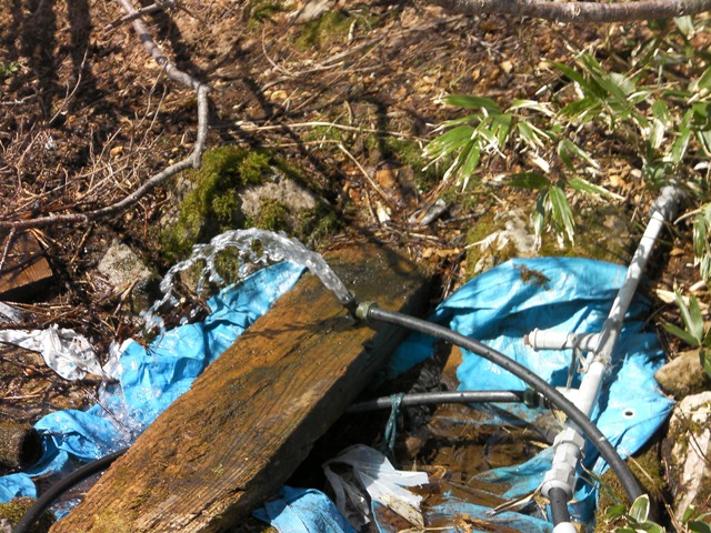 小屋脇の水場は,いつものようにしっかりと出ている.