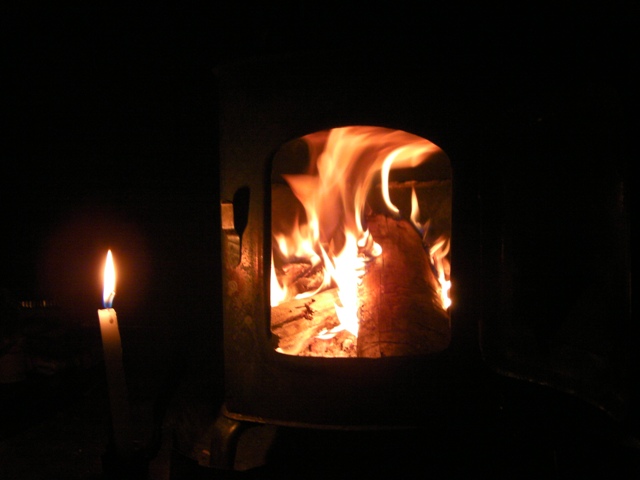 長い夜も薪ストーブの世話をしているうちにいつの間にか更けていく.