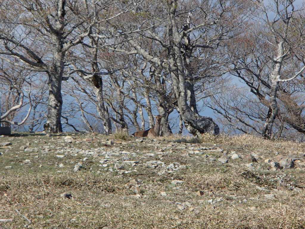 <山頂では鹿が出迎えてくれた>