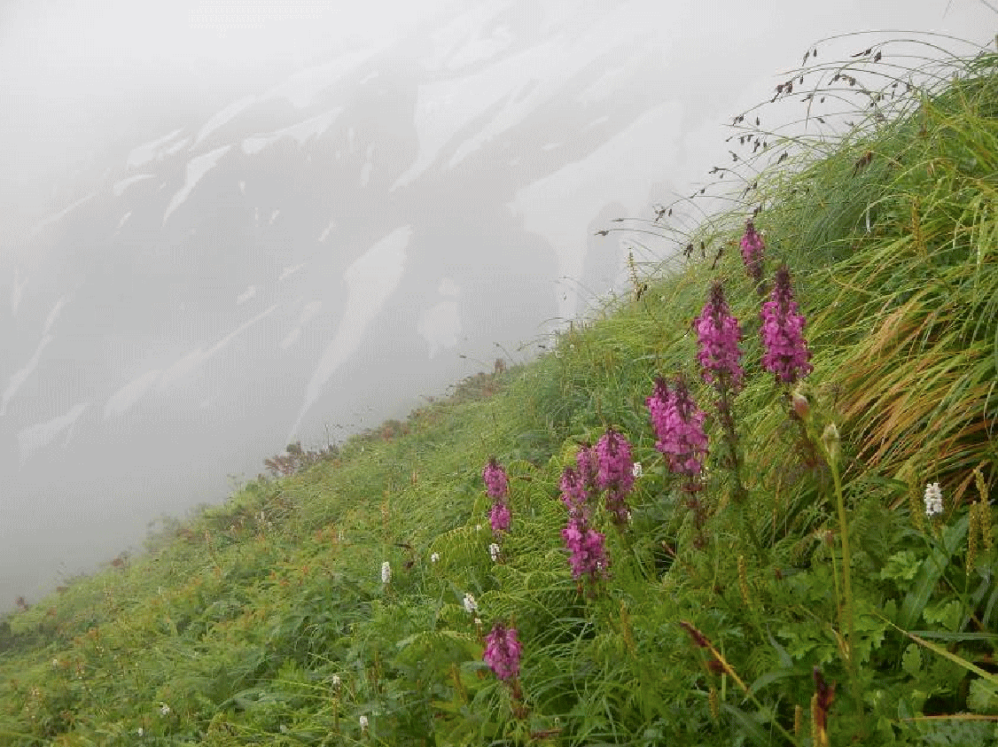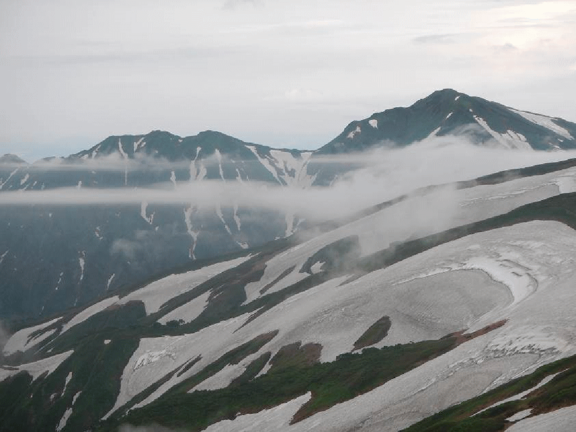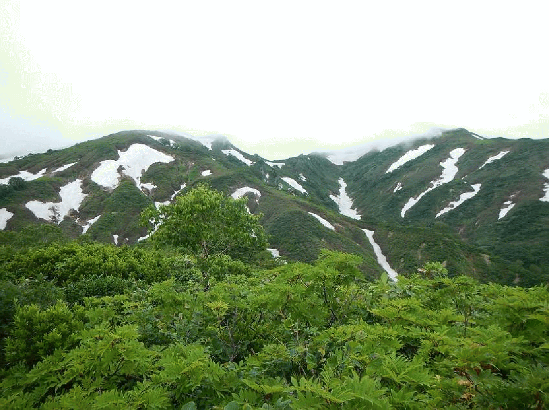 天気は登りワンピッチは雨。御田で雨具を脱ぐ。本山のキャンプ場で幕営。テントは1張のみ。本山小屋泊りも10人いないくらい。夕方は晴れて展望が利いた。翌日、本山にピストンする。大日岳もよく見えるが、下りでガス、次第に雨となった。天気のせいもあり、海の日の連休にしては登山者がいなかった。久しぶりの飯豊は静かな山となり十分に楽しめた。やはり飯豊はよい。
