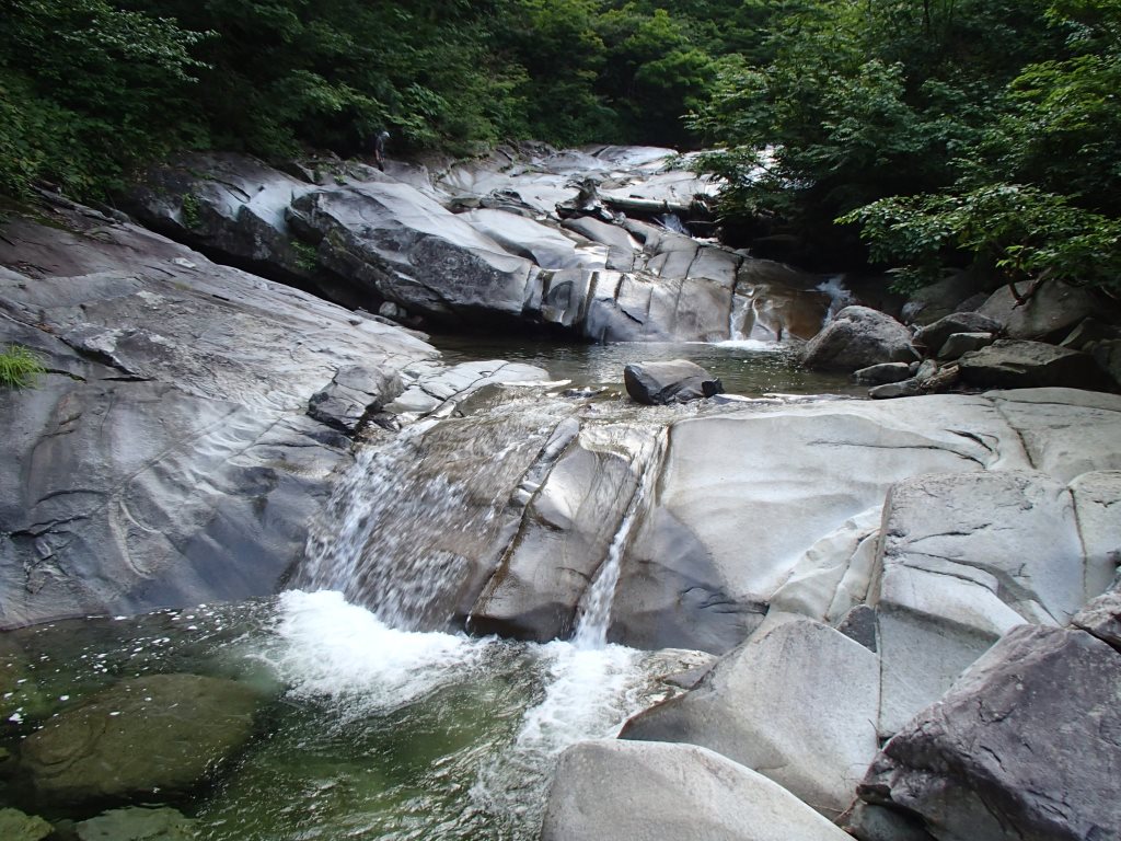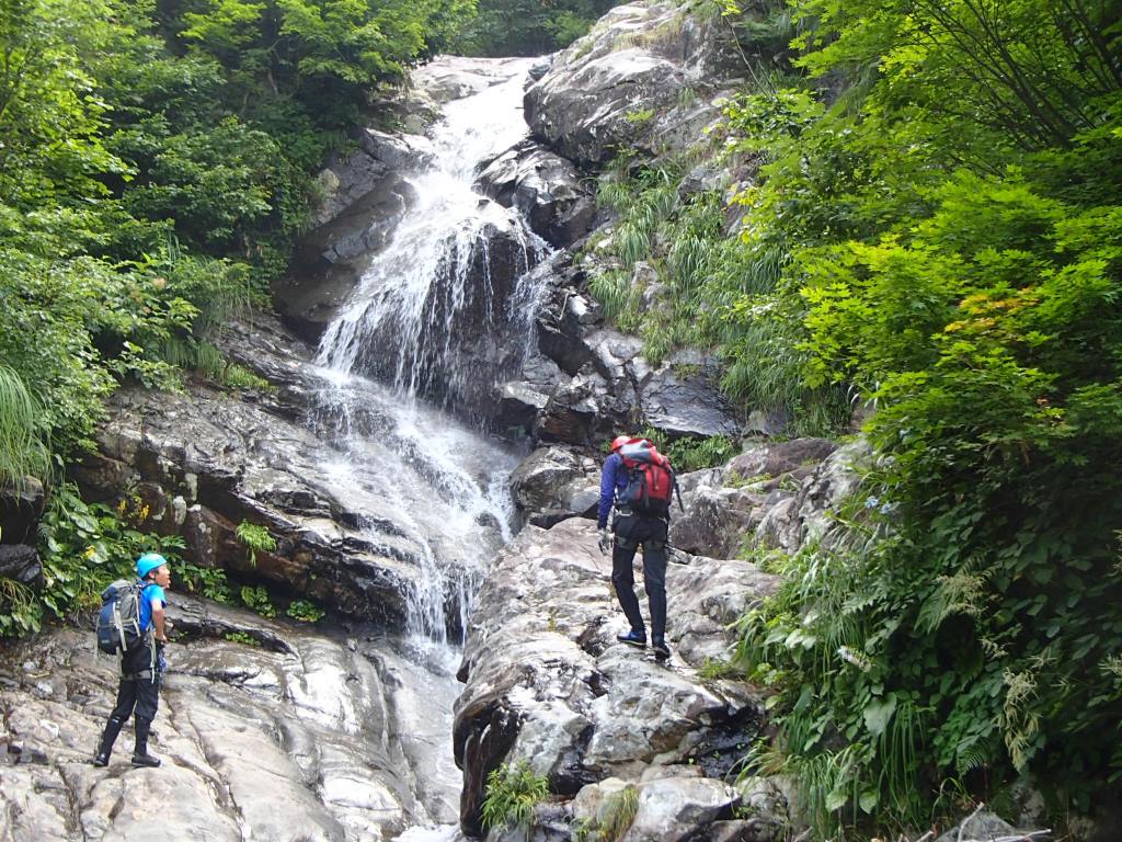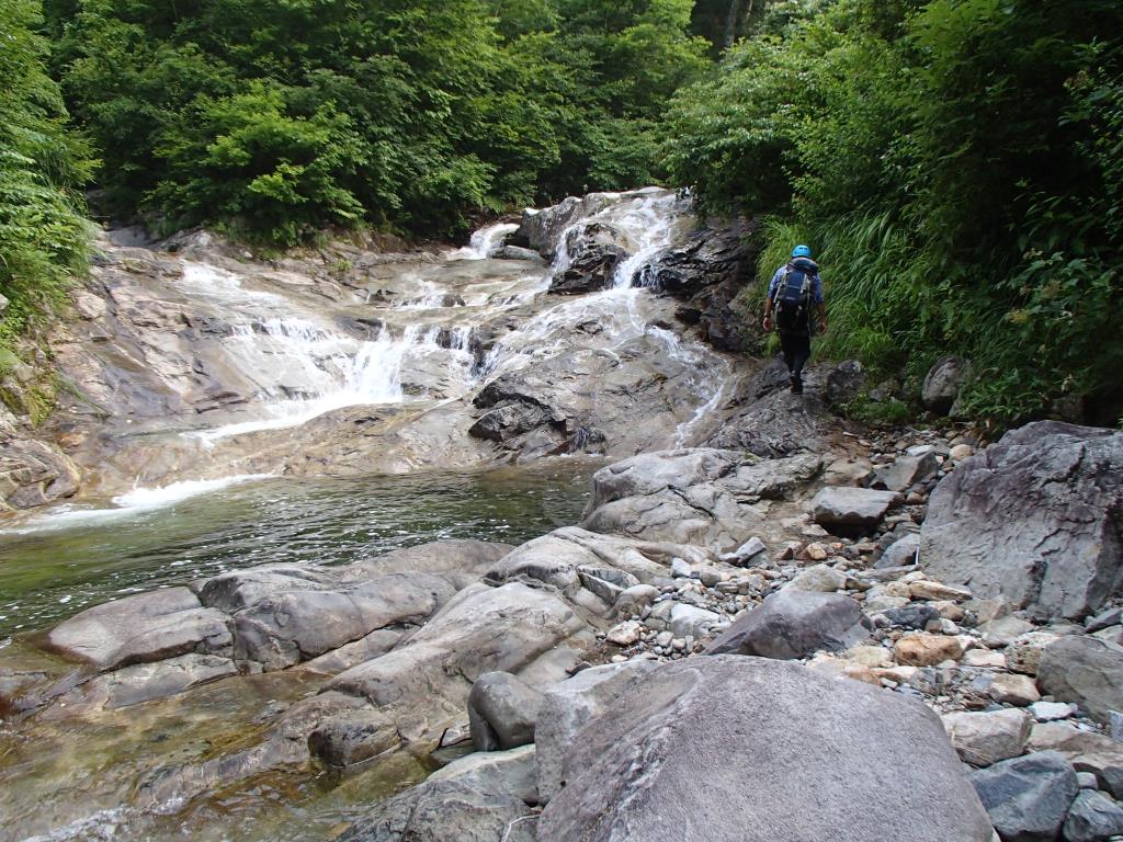更に10分ほどで白毛門沢出合いとなる。白毛門沢に入るとスケールは小さくなるが、ところどころ滝が現れ、飽きさせない。