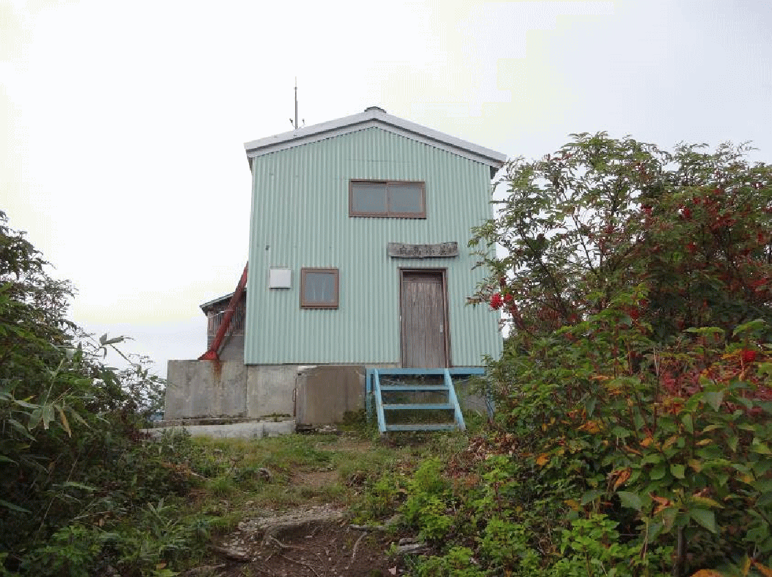 天気は高曇り。小屋の屋根の上の見晴らし台に登ってみる。春に来た時は天気が良く、すべてが輝いて見えた。今回は栂海新道方面も朝日岳はガスがかかってしまってしまい、すぐ下に広がる海もドンヨリとして見えていた。少し残念…。