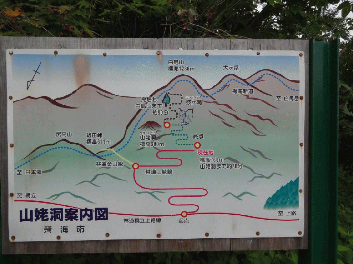<山姥洞道入り口の看板>