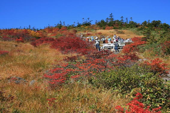 苗場山の祓川コースというごくごく一般ルートにもかかわらず、日没近くなって降りてきたというショボイ記録ですが。自分としては今季最高の紅葉だったので紹介します。紅葉には少し早いかと思ったのですが、中ノ芝のツツジ類の紅葉と山頂湿原の草紅葉が最高でした。