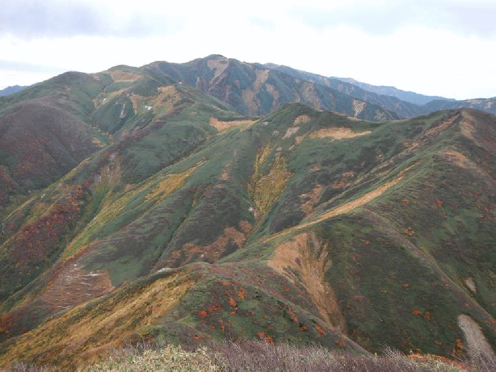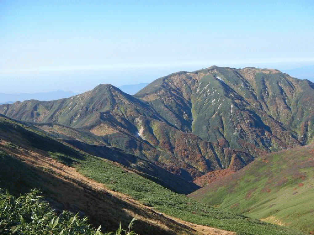 「飯豊連峰主稜線」 「丸森尾根の下り」