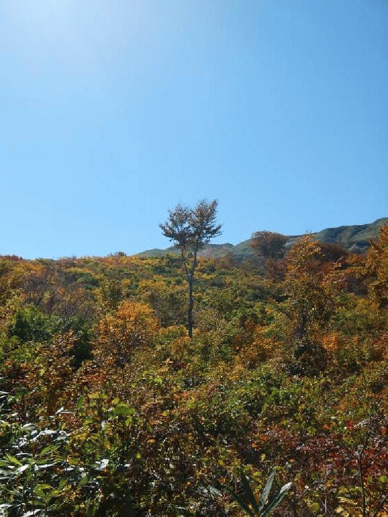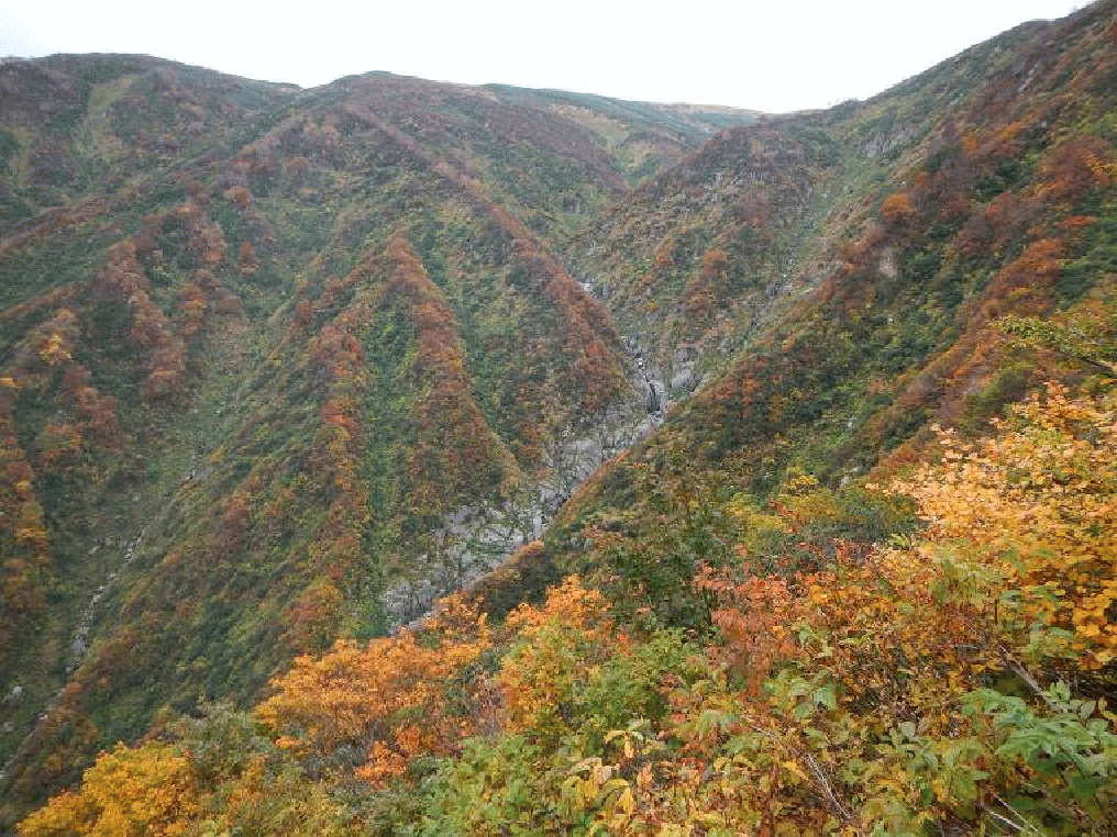 翌日は高曇り。雨が降る前に下山した。紅葉が素晴らしかった。