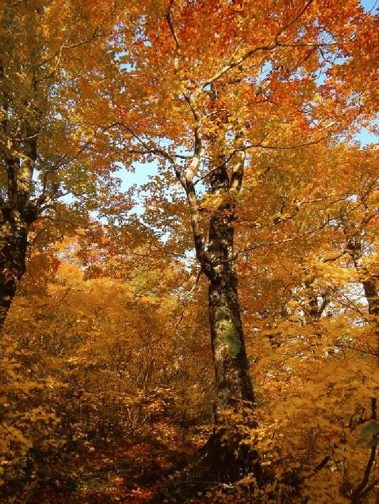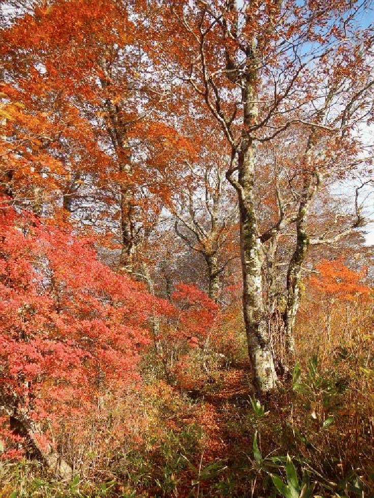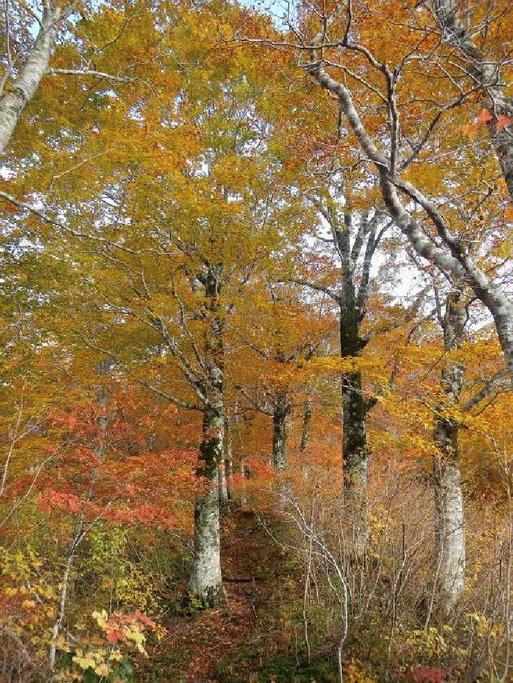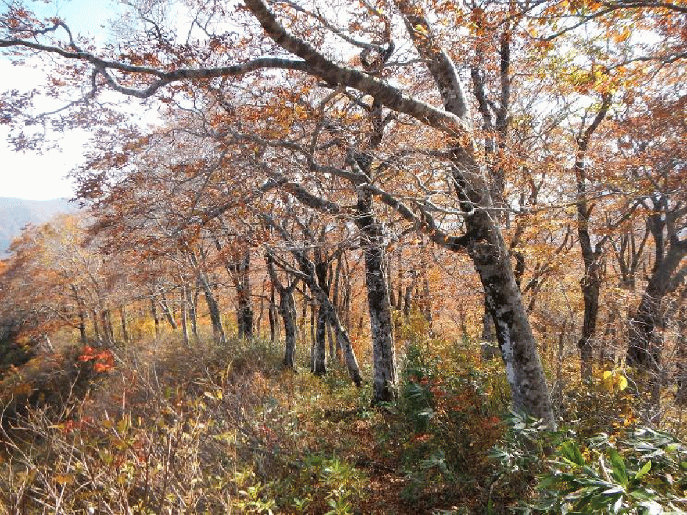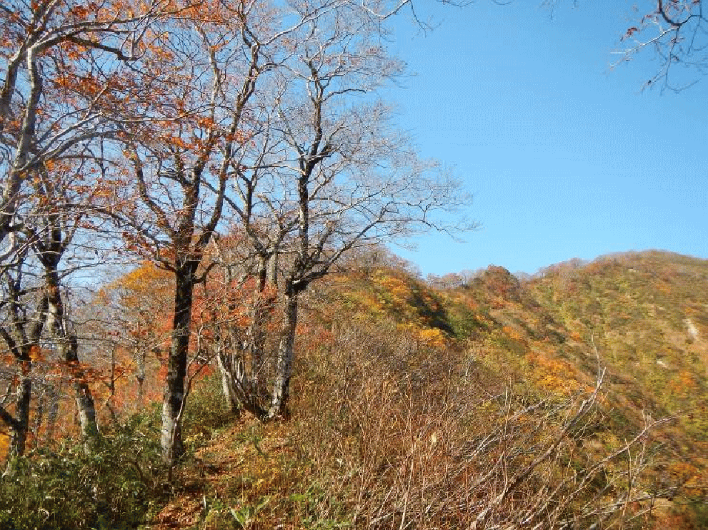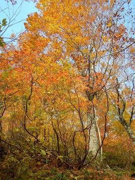 登山口は根ノ崎口。2001年に整備された道で歩きやすい。登り始めは早かった紅葉も上に行くにしたがって真っ盛りとなる。ブナの葉が美しい。途中でガスの中に入ってしまい、神室山頂からの展望は得られなかった。ここで小又山まで縦走する気はなくなってしまった。